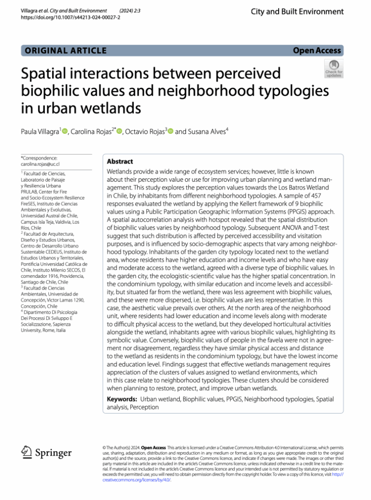 Lee el artículo Spatial interactions between perceived biophilic values and neighborhood typologies in urban wetlands. Pincha Aquí